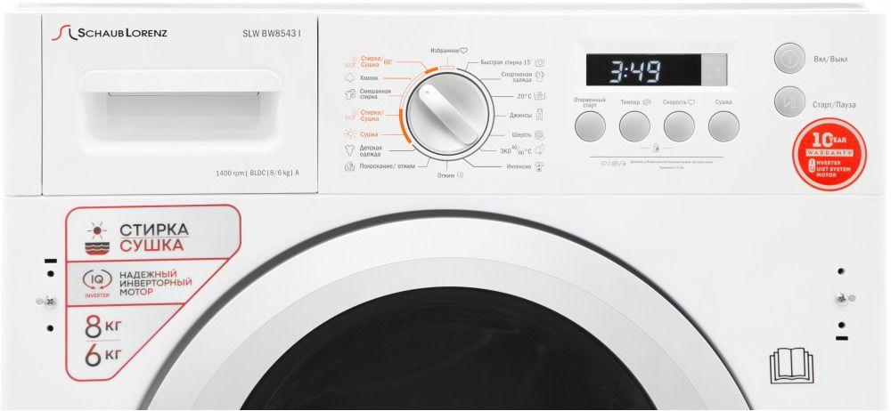 Встраиваемая стирально-сушильная машина Schaub Lorenz SLW BW8543 I – большая вместимость 8/6 кг и тихая работа