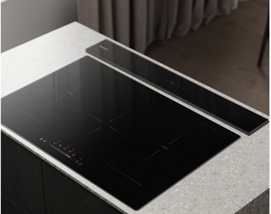 - Инновационный дизайн Down Draft (встраивание в столешницу) – максимальная экономия места и минималистичный интерьер