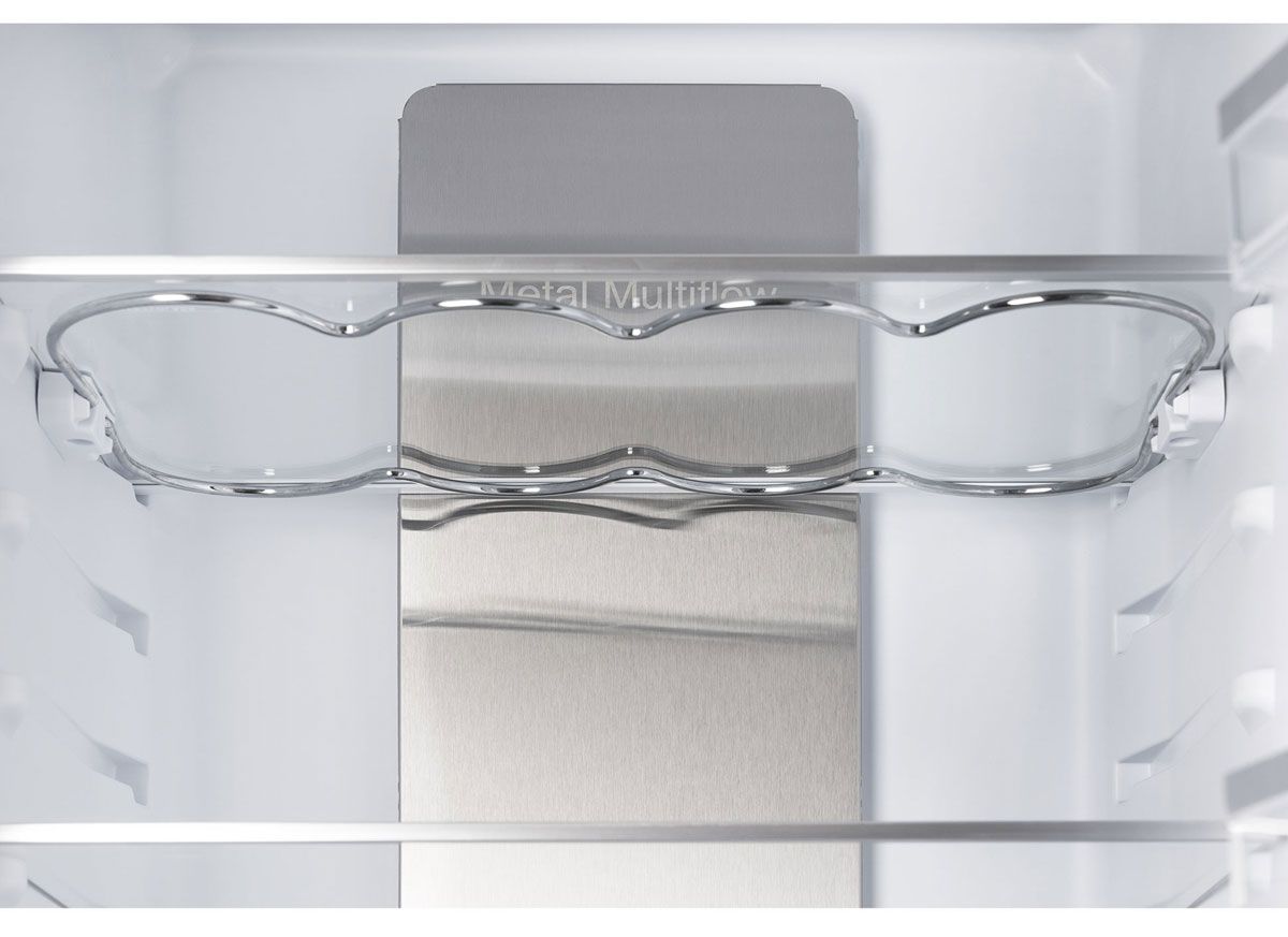 - Технология Metal Cooling — металлическая охлаждающая панель на задней стенке помогает быстро восстанавливать холод после открывания двери, экономя энергию.