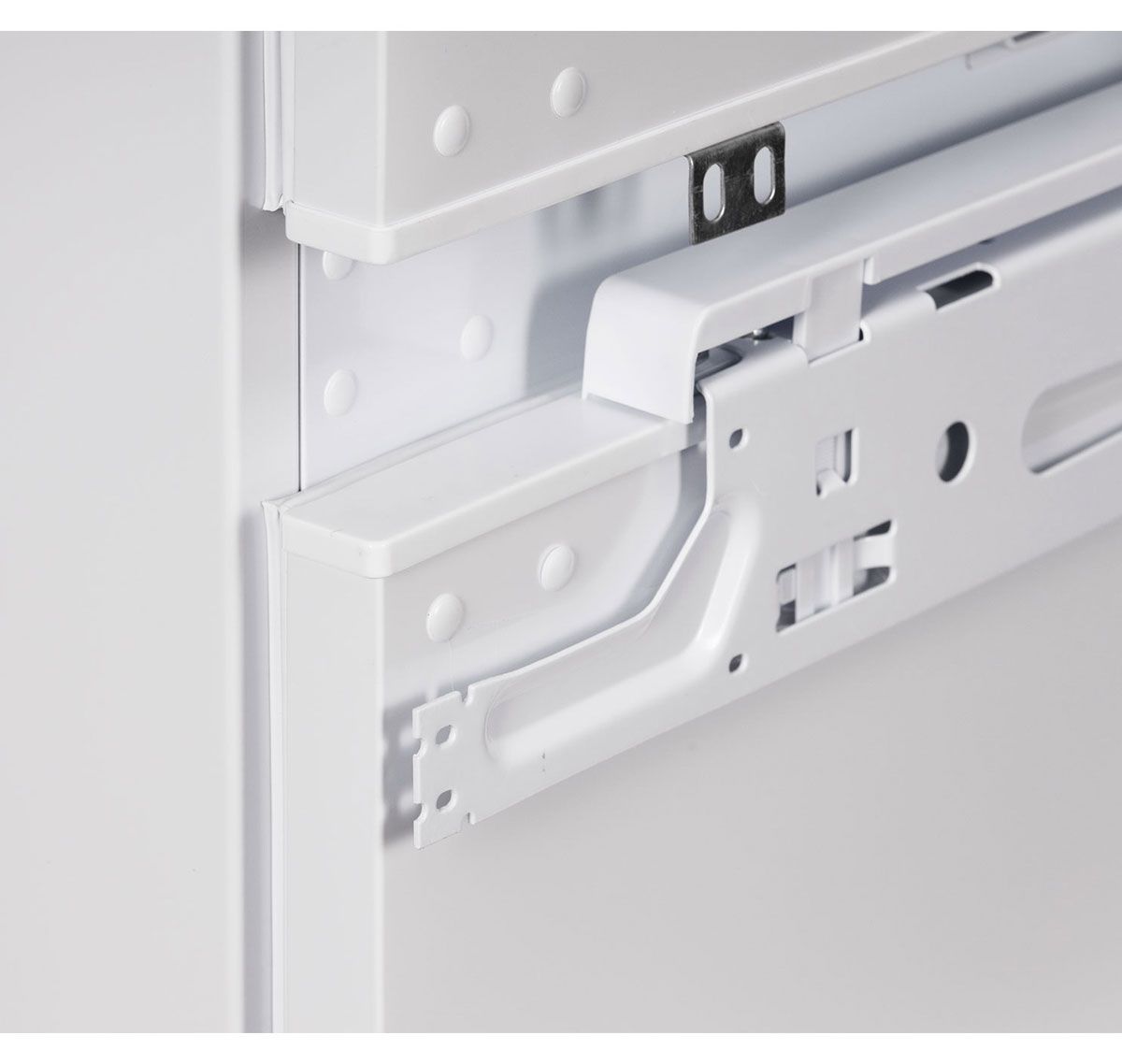 - Жесткое крепление фасадов (Door-on-Door) — позволяет монтировать мебельный фасад напрямую к двери, создавая безупречно ровную поверхность с кухонным гарнитуром.