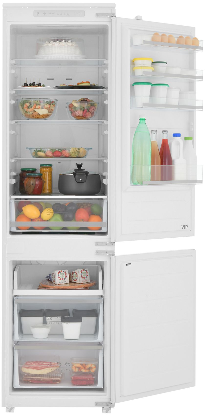 Встраиваемый двухкамерный холодильник ZUGEL ZRI2000FNF – это сочетание элегантного дизайна и инновационных технологий. Модель с системой Full No Frost полностью интегрируется в кухонный гарнитур, обеспечивая безупречный внешний вид, который никогда не выйдет из моды. Сенсорное электронное управление обеспечивает легкий и точный контроль над всеми функциями устройства.
