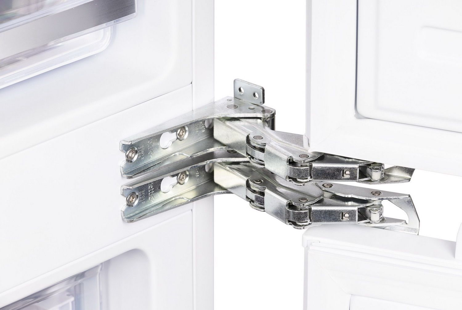 - Жесткое крепление фасадов (Door-on-Door) — система позволяет монтировать мебельный фасад напрямую к двери, создавая безупречно ровную поверхность с кухонным гарнитуром без видимых зазоров.
