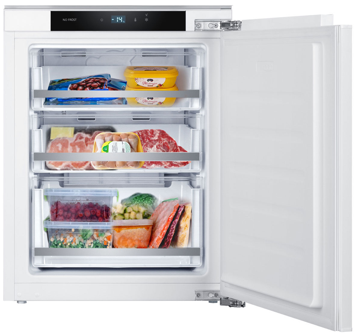 - 3 ящика в морозильной камере со стальным обрамлением – удобная сортировка заморозки – 3 ящика позволяют раздельно хранить мясо, рыбу, овощи и полуфабрикаты. Стальное обрамление – прочность и эстетика.