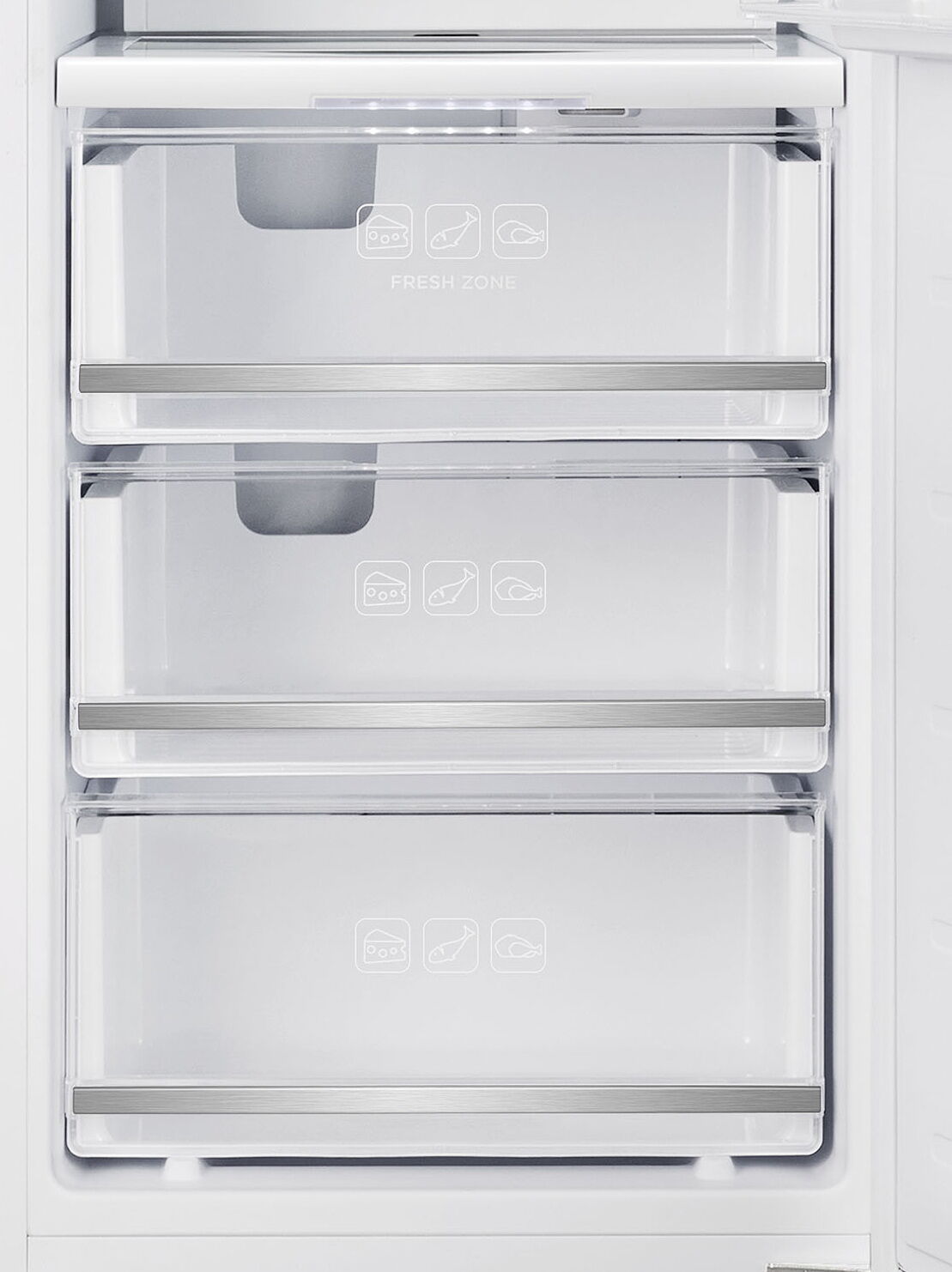 - Зона свежести (Fresh Zone) – идеальные условия для овощей, фруктов и охлаждённых продуктов – специальное отделение с оптимальной температурой и влажностью для длительного хранения продуктов.