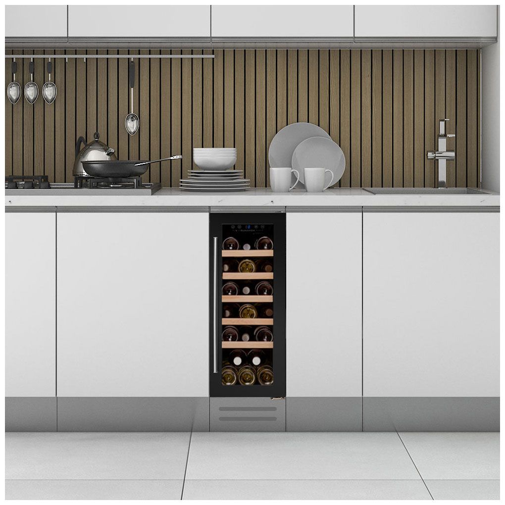 - Вместимость 19 бутылок – оптимальный объем для компактной кухни