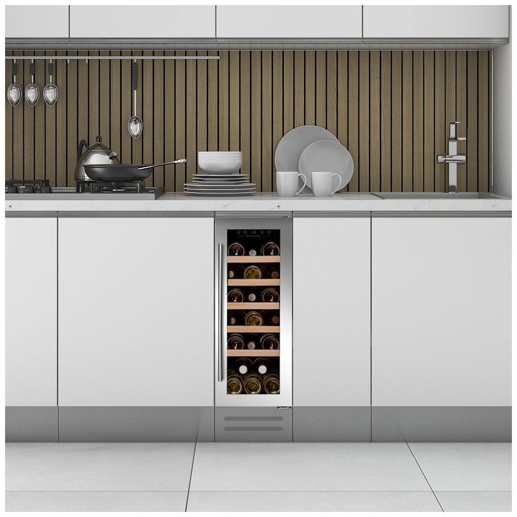 - Вместимость 19 бутылок – оптимальный объем для компактной кухни