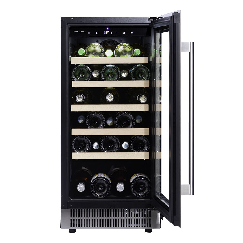 Винный шкаф Dunavox DAUF-32.83SS – это стильное и компактное решение с узким корпусом (ширина 38 см), дверью из нержавеющей стали и панорамной подсветкой. Модель создана для бесшовной интеграции под столешницу или в узкую колонну, сочетая премиальный дизайн, энергоэффективность и эффектную презентацию коллекции.