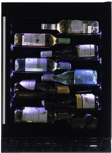 - Панорамная синяя подсветка и УФ-защита – синяя светодиодная подсветка создает эффектную панорамную подсветку коллекции, подчеркивая цвет и этикетки бутылок. Двойное стекло дверцы с УФ-фильтром надежно защищает вино от вредного ультрафиолетового излучения.