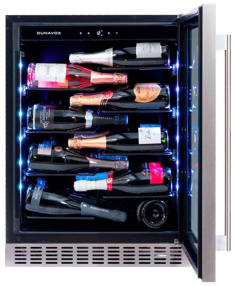 Встраиваемый винный шкаф Dunavox DAUF-40.138SS сочетает элегантный дизайн с элементами из нержавеющей стали и передовые технологии для создания идеальных условий хранения винной коллекции. Модель предназначена для встраивания под столешницу и оснащена однозонным климат-контролем.