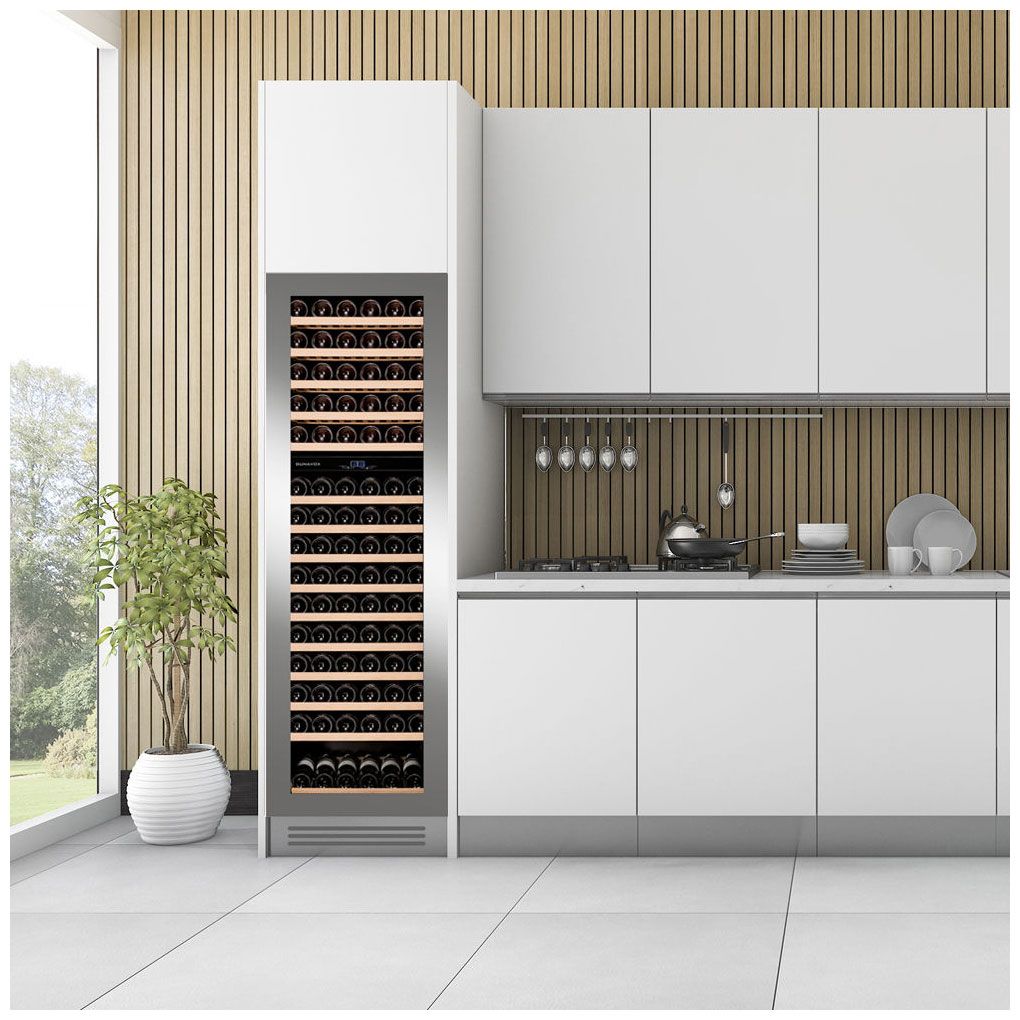 - Вместимость 114 бутылок — достаточно места для крупной винной коллекции