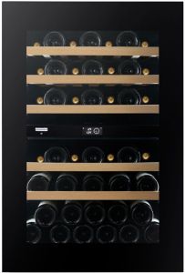- Двухзонное климатическое регулирование — независимые температурные зоны для одновременного хранения красных и белых вин. Верхняя зона: +5°C до +10°C, нижняя: +10°C до +18°C.