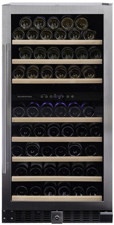 Встраиваемый винный шкаф Dunavox DX-94.270SDSK – две зоны и стальная дверь для 94 бутылок