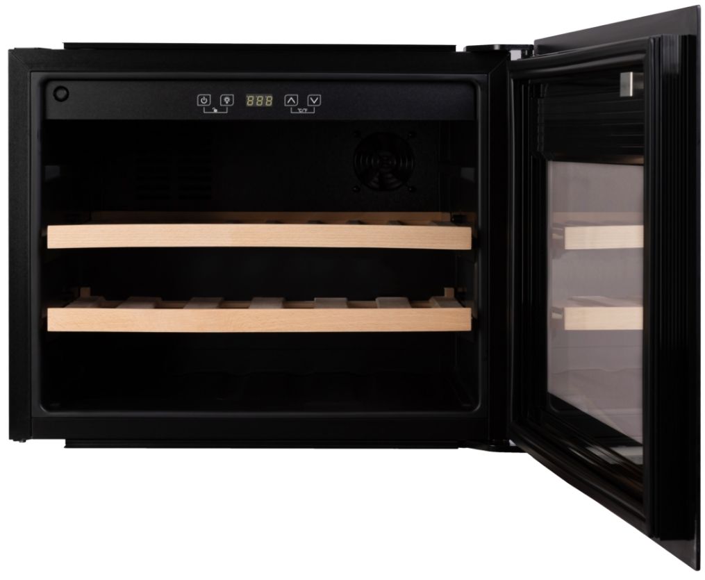 Встраиваемый винный шкаф Graude FWK 45.2 в стильном черном цвете сочетает лаконичный европейский дизайн и современные технологии для безупречного результата. Модель оснащена дверцей с защитой от УФ-лучей, сенсорным управлением и выдвижными деревянными полками.