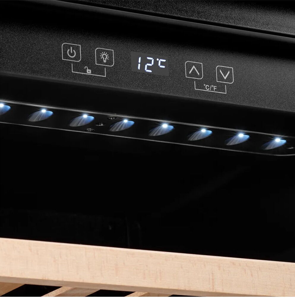 Оптимальная вместимость – Объем 62 литра и 2 деревянные полки обеспечивают хранение до 28 бутылок стандарта «Бордо», что идеально для ежедневной коллекции или наиболее часто употребляемых вин.
