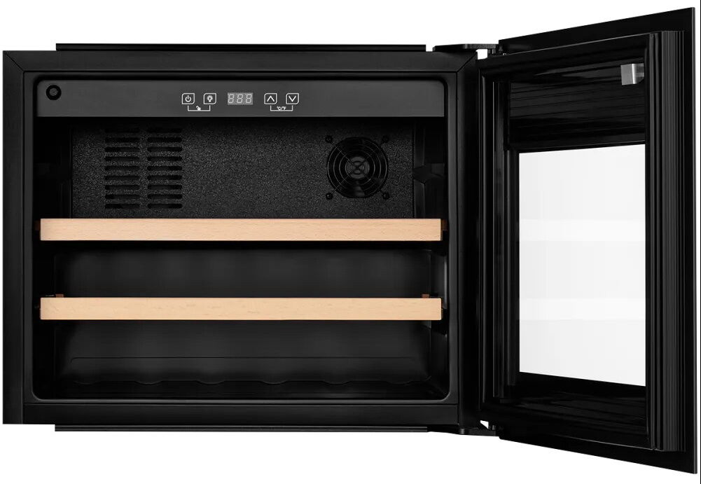 Винный шкаф Kuppersberg RBW 46 – это самое низкое встраиваемое решение высотой всего 44 см, оснащенное удобной сенсорной дверью. Модель создана для бесшовного монтажа под столешницу в самых ограниченных по высоте пространствах, предлагая современный способ хранения коллекции до 28 бутылок.