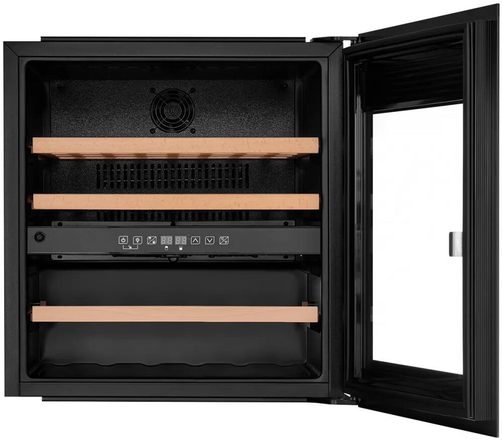 - Электронное управление и LED-дисплей — точный контроль температуры в каждой зоне через цифровой дисплей. Сигнализация открытой двери и неисправностей для вашего спокойствия.