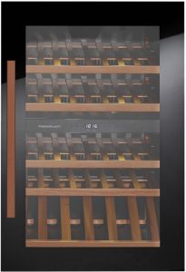 - Две независимые температурные зоны (5-18°C) — раздельное точное регулирование температуры в верхнем и нижнем отделениях. Возможность создания индивидуальных условий для белых, красных, розовых и игристых вин в одном шкафу.