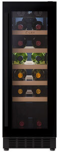 - Оптимальная вместимость в узком корпусе — ширина всего 29.5 см при вместимости 20 бутылок на 5 деревянных полках. Объем 56 литров идеален для компактного хранения.
