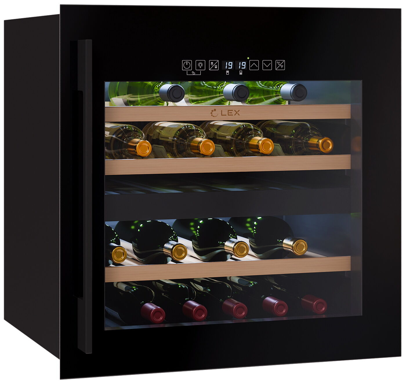 Встраиваемый винный шкаф LEX LWD6036BL dual zone S — компактная колонна с двумя климатическими зонами