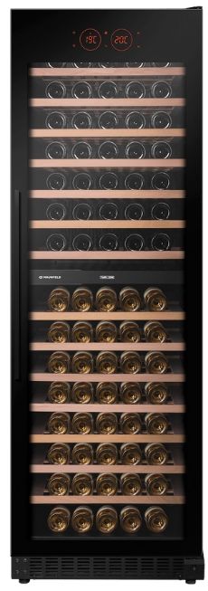 - Двухзонный климат-контроль — независимые температурные зоны для профессионального хранения разных типов вин. Диапазон температур: от +5°C до +22°C для каждой зоны.