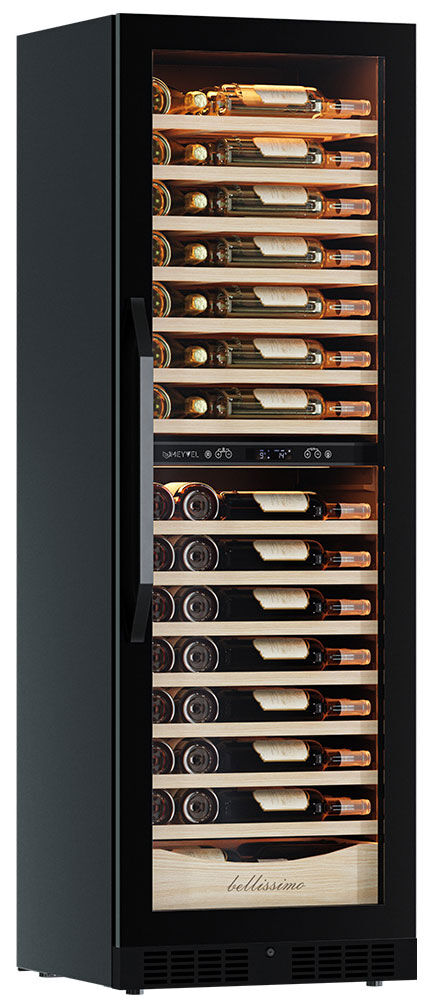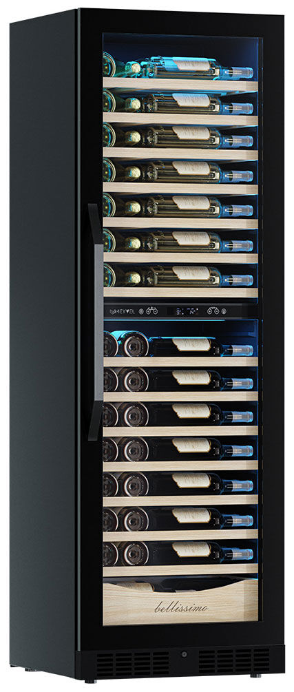 - Готовое решение для ресторана или бара – две температурные зоны и вместимость на 110 бутылок позволяют одновременно хранить фонд и иметь запас вина, готового к подаче.