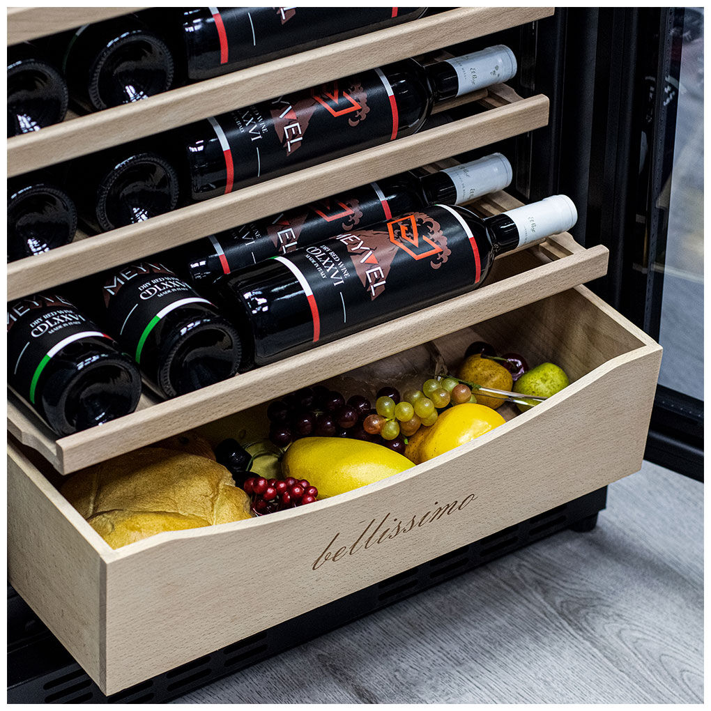 - Колоссальная вместимость в slim-корпусе – хранение до 110 бутылок в шкафу глубиной всего 55 см – оптимальное решение для современных интерьеров с ограниченным пространством.