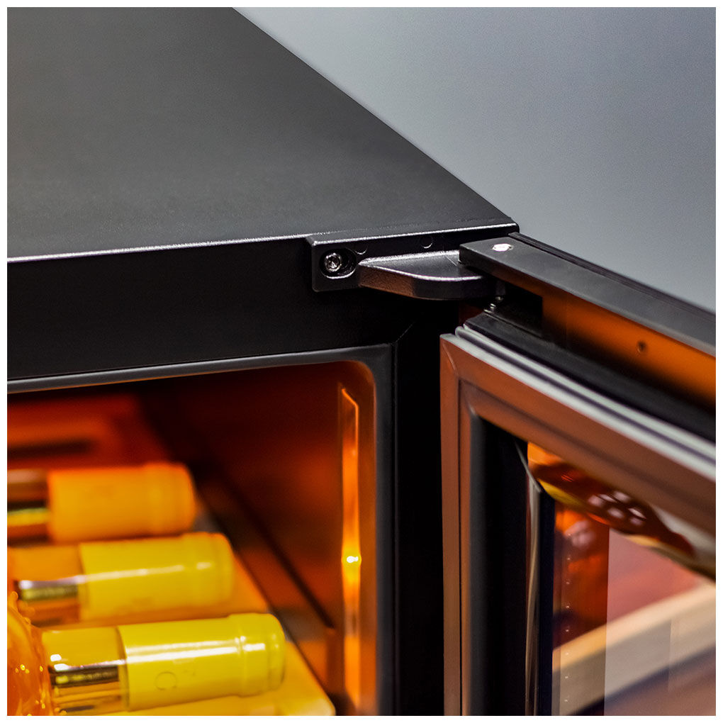 - Полный контроль и защита – от УФ-лучей и вибраций до перепадов температуры – ваша коллекция из 110 бутылок находится под неусыпным надзором интеллектуальной системы.