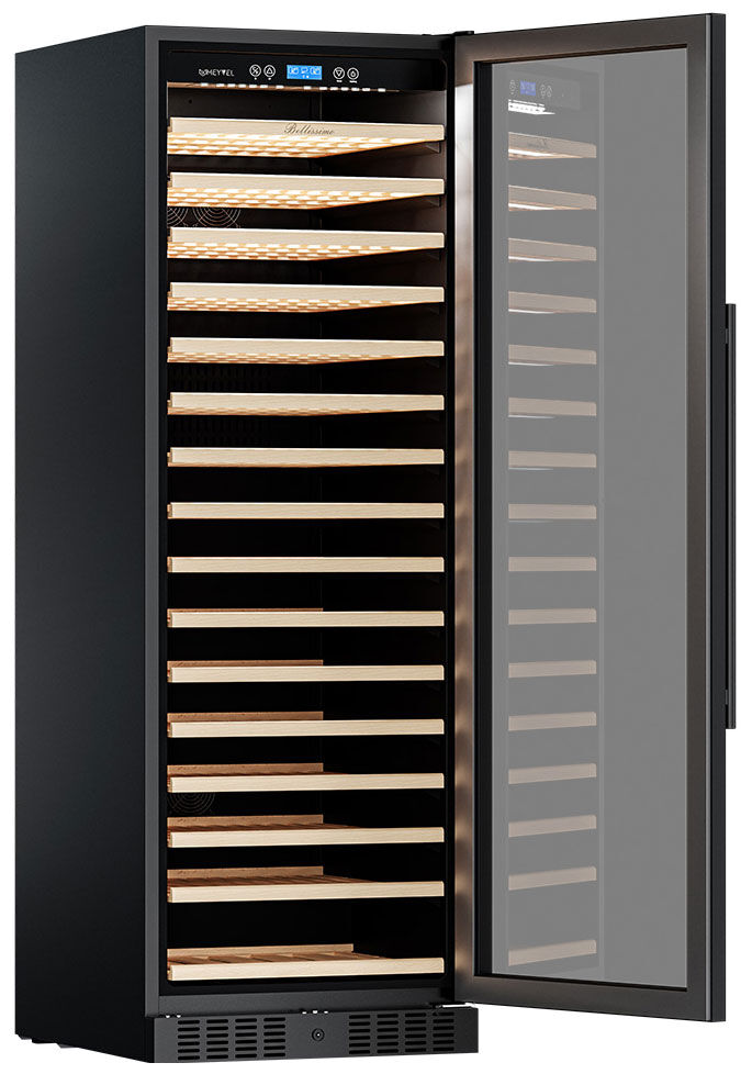 - Максимальная вместимость на рынке встраиваемых шкафов – хранение до 186 бутылок делает эту модель одним из самых вместительных решений для частных винных погребов, ресторанов, баров и отелей.