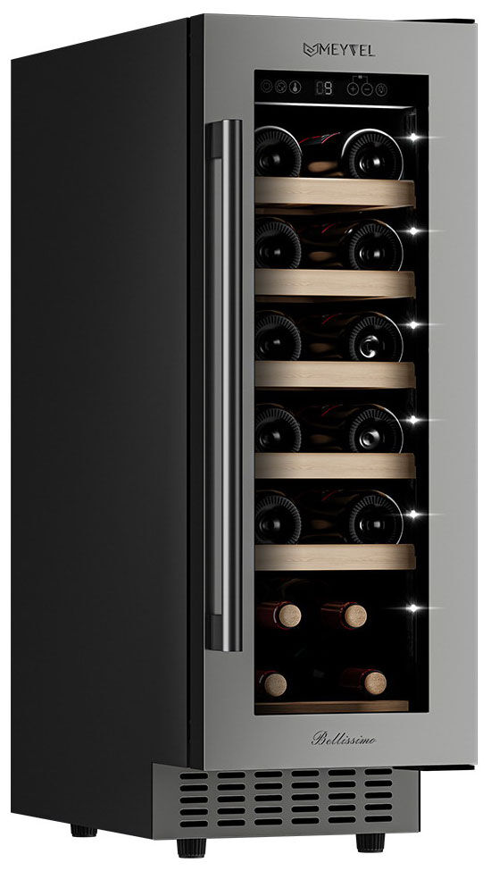 Встраиваемый винный шкаф Meyvel MV19-KST1 – узкий шкаф с премиальной отделкой для 19 бутылок