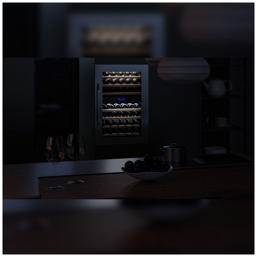 Встраиваемый винный шкаф Meyvel MV42-KSB2 в стильном черном цвете сочетает лаконичный итальянский дизайн и инновационные технологии для создания профессиональных условий хранения винной коллекции. Модель оснащена двойной стеклянной дверцей, сенсорным управлением и 7 деревянными полками.