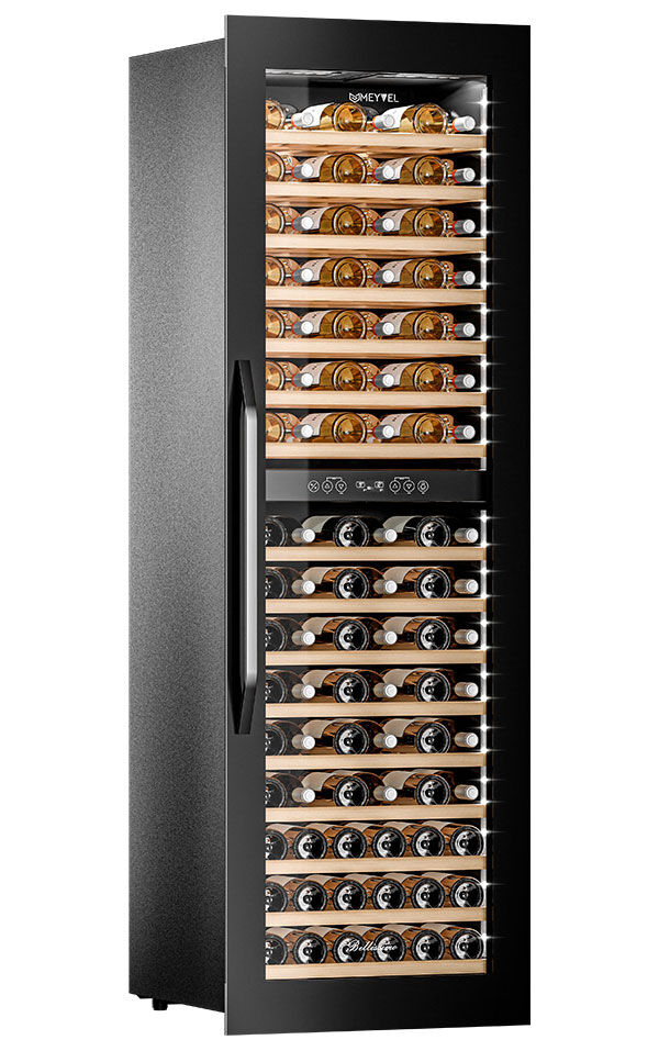 Встраиваемый винный шкаф Meyvel MV83-KBB2 – двухзонный погреб для 96 бутылок в высокую колонну