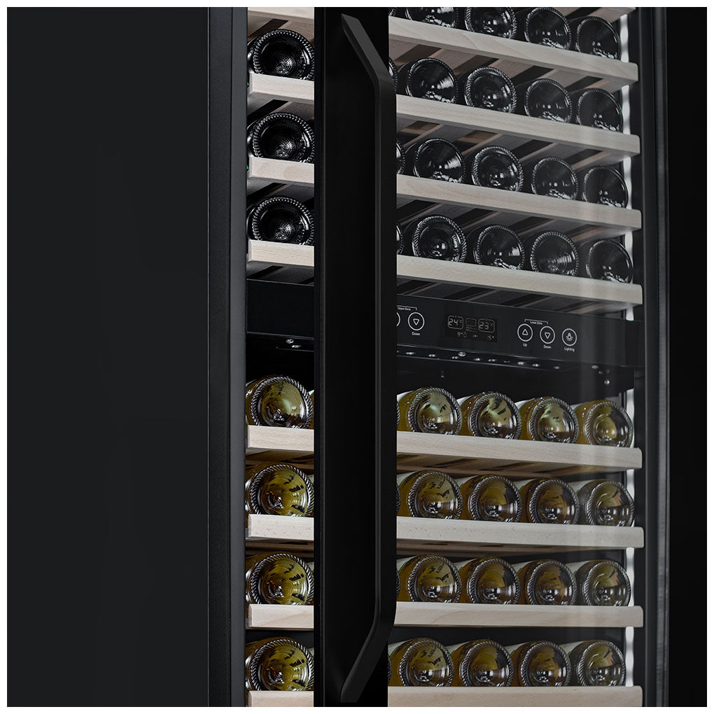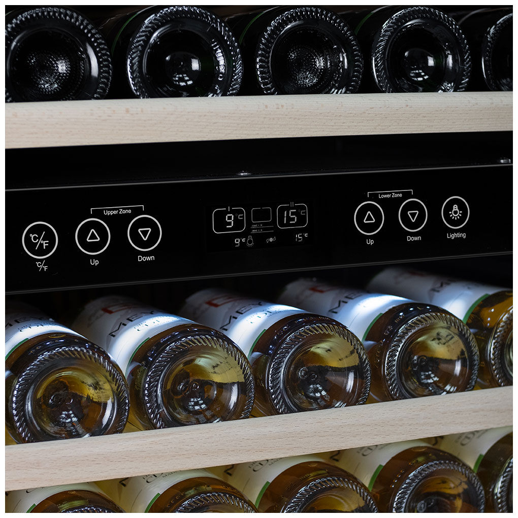 - Универсальность двухзонного хранения – идеальный инструмент для ценителя, позволяющий одновременно создавать долгосрочные условия для выдержки и иметь запас вин, охлаждённых до температуры подачи.