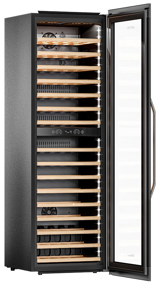 - Эффективное разделение климата – наличие отдельных вентиляторов для каждой зоны – ключевое преимущество, которое гарантирует, что температурные профили не будут смешиваться, обеспечивая точные условия для хранения разных категорий вин.