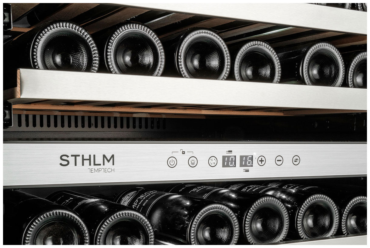 Встраиваемый винный шкаф Temptech STX60DRB – профессиональное двухзонное хранение, увеличенная вместимость и интеллектуальный контроль