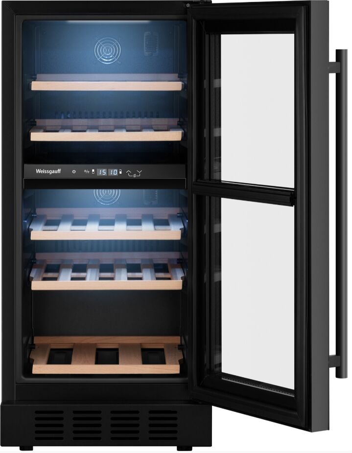 Встраиваемый винный шкаф Weissgauff WWCI-26 DB DualZone — двухзонное встраивание на 26 бутылок