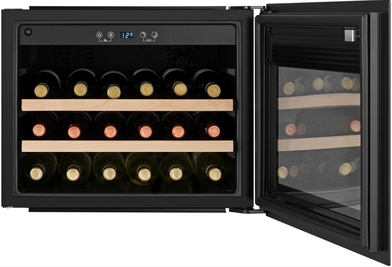 - Электронное управление с блокировкой — интуитивная панель управления позволяет легко устанавливать и контролировать температуру в диапазоне от +5°C до +20°C. Функция блокировки от детей предотвращает случайное изменение настроек.