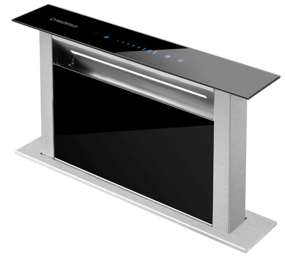 Вытяжка Maunfeld Prestige 90 черный – это широкое и производительное решение для скрытого монтажа в столешницу. Модель в элегантном черном стекле с акцентами из нержавеющей стали обеспечивает мощную очистку воздуха над просторной варочной зоной, полностью скрываясь в плоскости столешницы после использования.