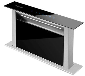 Скрытая установка и широкий захват – Вытяжка монтируется в столешницу и автоматически поднимается при включении. Ширина 88 см идеально подходит для обслуживания широких, островных или профессиональных варочных панелей. После работы полностью убирается, сохраняя безупречный вид кухни.